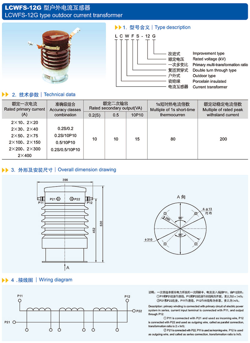 LCWFS-12G Type current transformer
