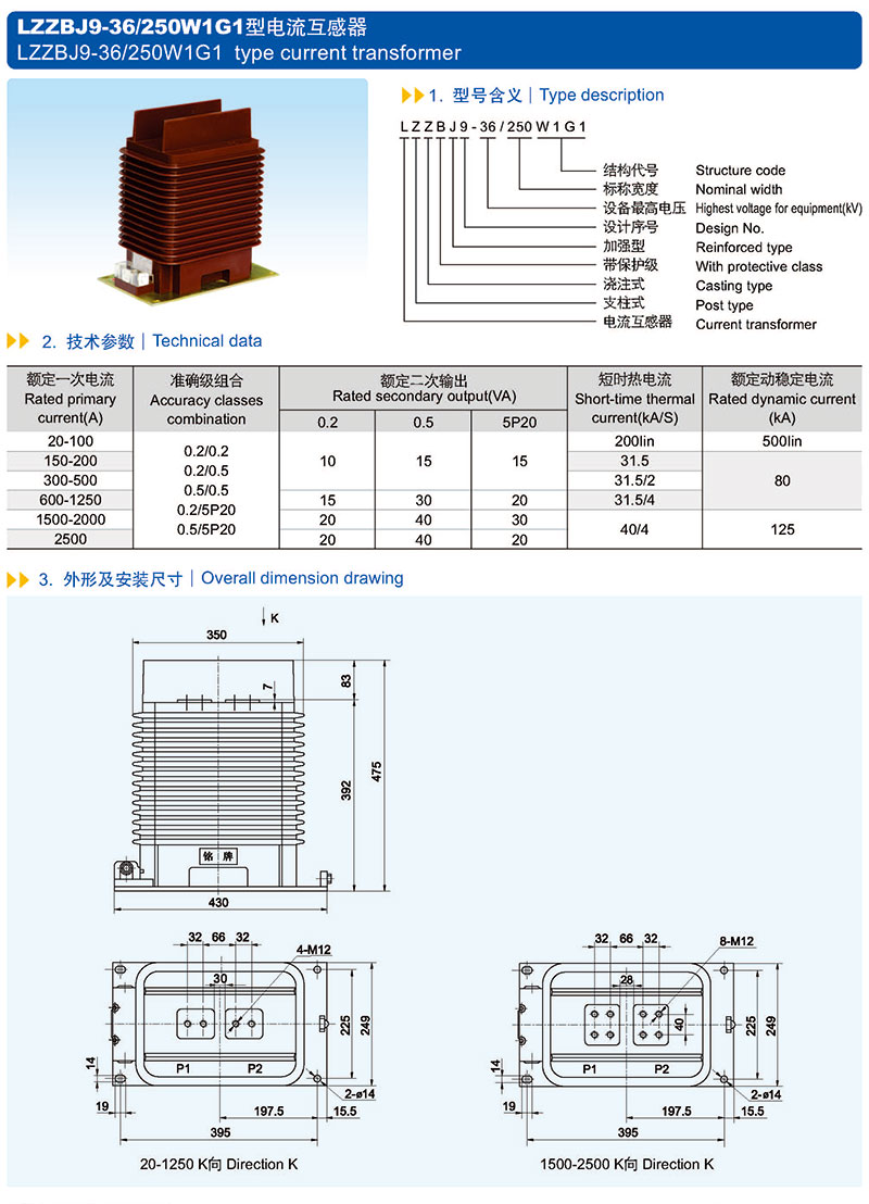 LZZBJ9-36丨250W2G1型電流互感器