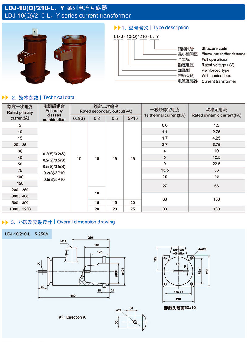LDJ-10(Q)210-L、Y Type current transformer
