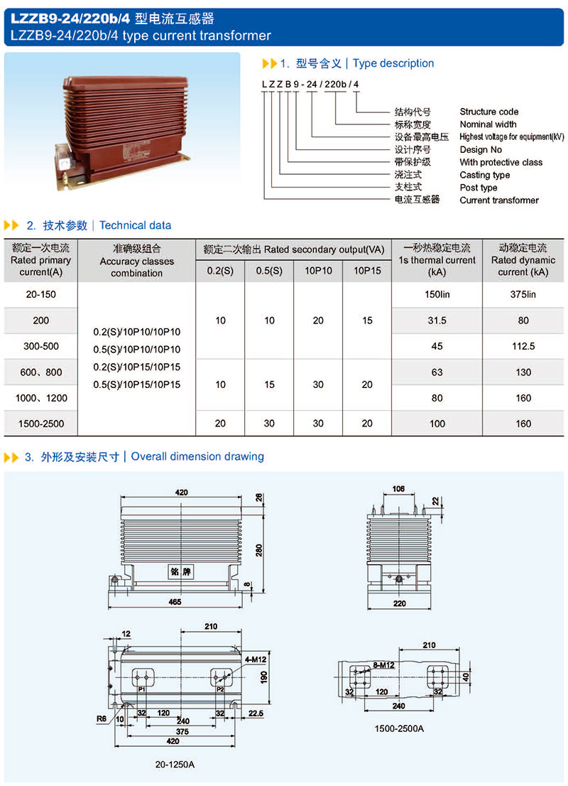 LZZB9-24丨220b丨4 Type current transformer